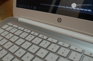 Durante mi vida he tenido la oportunidad de usar varios equipos portátiles y debo decir que el diseño de la Chromebook 14 es uno de los mejores que he visto en una laptop, especialmente si tomamos en cuenta el rango de precios en el cual se maneja. La Chromebook 14 está hecha totalmente de plástico, pero al usar colores claros (disponible en Perú en blanco y turquesa), le añade un toque entre elegante y moderno, lo cual sumado a su estilizado diseño, la convierte en una delicia a la vista. Si bien sus dimensiones no llegan a ser las de una ultrabook, la Chromebook 14 se ve bastante delgada en comparación a otras laptops del mercado, lo cual sumado a su peso de tan solo 1.85 kg, la convierte en una herramienta bastante portable.