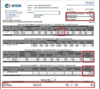 Puede ser como dice la ANONIMA señorita asesora de Entel. Se podria entender que el consumo pudiera verse duplicado, triplicado o hasta quintuplicado, pero en mi caso se elevo mas 13 veces mas, tomando en cuenta el plan q tenia en claro (3G con solo 750 MB al mes y q nunca terminaba de consumir). El uso de mi celular no vario de manera exagerada por la emocion de la rapidez del 4G, puede decirse que el uso fue el promedio, y ademas no exclusivo, porque ademas tambien tengo un iphone 5S con 3GB de movistar, asi que alternaba el uso del cel entel con este. Durante el dia respondia llamadas y contestaba eventuales mensajes de whatsapp o facebook… Cuando migre, no me informaron que el mega adicional costaria 0.20 centimos, tampoco me dijeron los que anonima señorita asesora afirma, y lo transcribo textualmente «que a consecuencia de tener un internet mejorado en velocidad pues esto hace que haya un consumo mayor en navegación, a diferencia de un 3G», suena rimbombante esta explicación, pero porque? Acaso si bajo una aplicación de 100 megas con 4G debería convertirse en 200, 300, 400 o 500 megas? Si es así, cual es la explicación científica? No lo dice. Finalmente, debo aclarar que al momento de migrar, el vendedor no me informo sobre ninguno de estos «detallitos», pero si se esmero en detallarme las bondades del plan, como las llamadas ilimitadas a cualquier operador y al extranjero, haciendo incapie en que esto seria de por vida mientras mantenga un contrato don Entel, y no por determinado tiempo como estaban haciendo creer las otras operadoras, por ese motivo es que no se ponia limite al consumo de llamadas, y respecto a los datos, me dijo que Entel daba 5Gb en contraposicion de otras empresas que solo daban hasta 3GB y que esto era un gran beneficio. Si el vendedor me hubiera dicho despues de mostrarme las bondades del plan, que podría darse el caso que por la velocidad del 4G aumentara el tiempo de uso de mi celular, esto podría ocasionar que se eleve también el consumo de datos debido al mayor uso del teléfono y que de ser el caso, el mega adicional me costaría 0.20 céntimos, yo hubiera pensado mas el migrar a Entel y hubiera comparado costos con mi anterior plan, pero no fue asi, y emocionado por la cereza del helado, es decir, el iphone 5S a 9 soles, firme el dichoso traspaso… Interpuse el reclamo el dia lunes 24 de noviembre en la agencia de Entel que se encuentra en la Av. Javier Prado con la Av. La Molina, despues de esperar casi una hora para ser atendido. El día miércoles al tomar conocimiento por las redes sociales de otros usuarios a los que le estaba pasando lo mismo, decidí hacer publico mi caso en las redes sociales, y recien ayer en la tarde Entel mando un tuit diciendome que revisarian mi caso y nada mas. El dia de hoy en la mañana Osiptel me pidio que le envie mi recibo por correo, y recien hace un rato Entel me escribe por twitter pidiendome mi numero de celular para comunicarse conmigo, sim embargo, el dia lunes 24 de nov. despues de interponer el reclamo le escribi un DM a Entel para hacer de su conocimiento mi problema y le adjunte mi numero de celular.