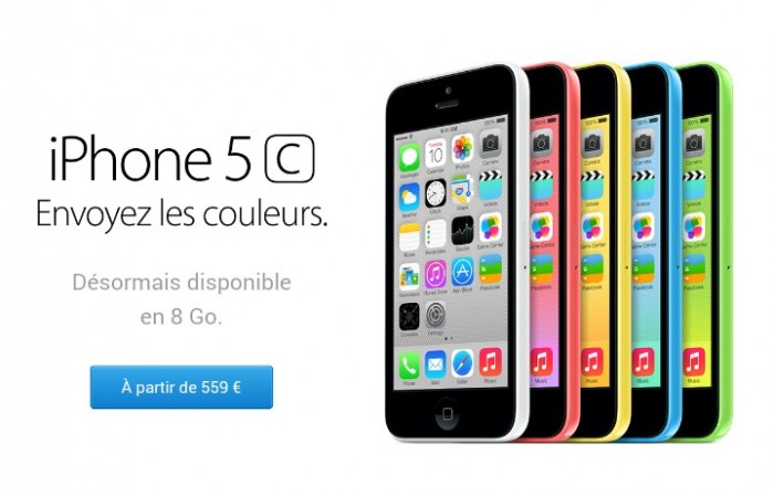 Como podemos ver en la página de la tienda Apple de Francia, el iPhone 5C se estará vendiendo a 559 euros (aproximadamente 2179 nuevos soles), 50 euros menos que la versión de 16 GB.