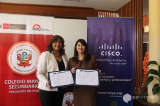 El día de ayer estuvimos presentes en una importante ceremonia en donde se llevó a cabo la firma de una alianza de cooperación entre la compañía internacional Cisco, a través de su programa Cisco Networking Academy, y el Colegio Mayor Secundario Presidente del Perú por el cual los estudiantes que egresan de sus aulas obtendrán una certificación técnica internacional en Informática, Ensamblaje y Reparación de Computadoras, así como en la especialidad de Instalación y Mantenimiento de Redes.