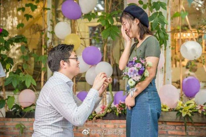 El desarrollador manifestó a un medio local que pidió la ayuda de sus amigos para que con engaños la lleguen a un lugar donde había planeado la propuesta y donde se encontraban 25 iPhone X en forma de corazón, junto a cientos de pétalos de rosa. La joven no sospechaba nada hasta que vio la propuesta y luego a Chen arrodillado junto a un anillo.