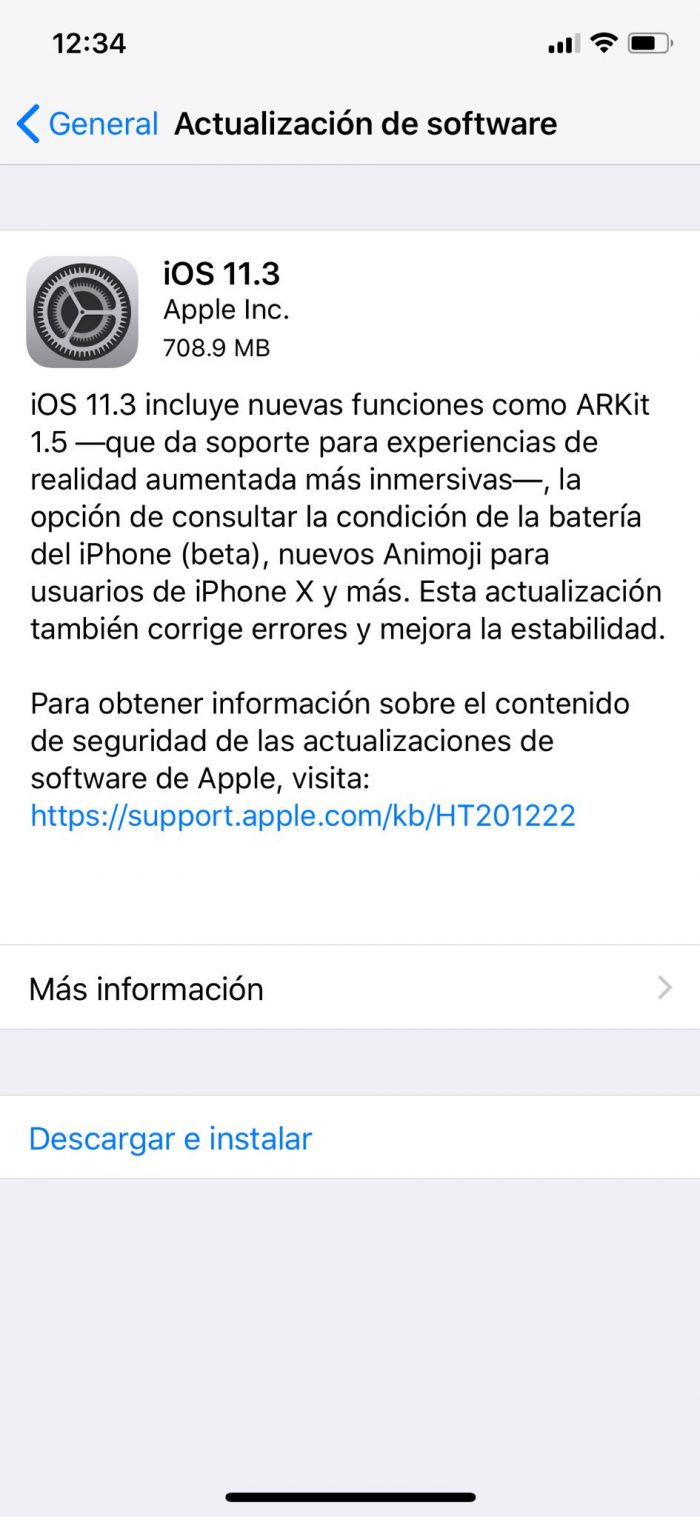 La actualización es obligatoria para todos pues a diferencia de versiones anteriores mejora las debilidades de iOS 11.3, pero sobretodo indispensable para iPhone y iPad que tienen más de un año de uso y que han sufrido graves problemas de autonomía y rendimiento. La actualización tiene un peso de 708.9 MB, así que lo ideal es que lo descargue por Wi-Fi.