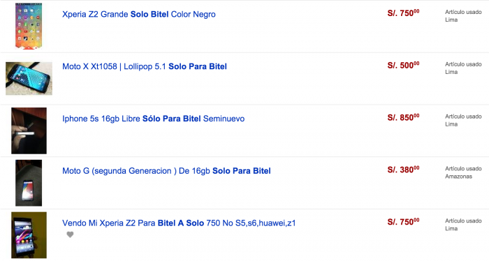 Los vendedores saben de esto y por ello le disminuyen el precio a diferencia de equipos libres de fábrica o compatibles con todos los operadores. Una búsqueda rápida en los portales de venta más usados en el país y con palabras claves nos botan estos resultados.