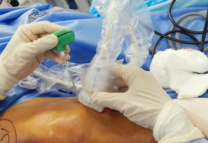 De acuerdo al Dr. Araujo, el tratamiento puede aplicarse de maneras distintas: La primera es mediante aplicación intraarticular (solo atraviesa la piel y cápsula articular), la cual se realiza en consulta con o sin guía ecográfica, bajo una inyección normalmente realizada al lado lateral de la rodilla (directamente o con anestesia local), específicamente al costado de la rótula. Una segunda opción es la aplicación intraósea (dentro del hueso), se procede a realizar una artroscopia coadyuvante con la finalidad de lavar la articulación, dejándola seca. Posterior a ello, se aplica de manera intraósea 5 centímetros cúbicos de plasma rico en plaquetas tanto en el platillo tibial medial y el cóndilo femoral medial, utilizando una aguja de biopsia aspiración de médula ósea.