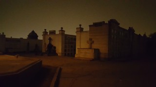 Así, nos fuimos hasta el Presbitero Maestro, conocido cementerio de nuestra Capital, donde tomamos una serie de fotografías solamente iluminados por una luna en cuarto creciente y la escasa iluminación de sus instalaciones (los que hayan ido alguna vez ahí de noche podrán confirmarlo), con los resultados que verán a continuación.