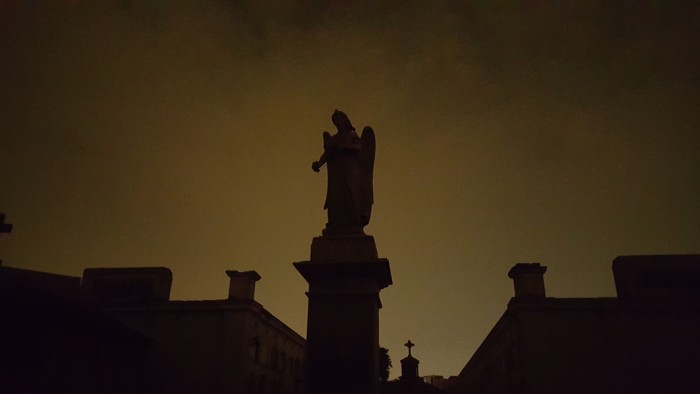 Tal como les adelantamos, la iluminación del cementerio es bastante escasa, por lo que a parte de un par de faros gigantes colocados en 4 o 5 lugares, no hay algo parecido a faroles o postes. Esto ayuda a fortalecer la experiencia de ir a un cementerio de noche, pero sin duda no ayuda al momento de tomar fotos. Aunque en esta ocasión, creemos que los resultados han sido bastante buenos.