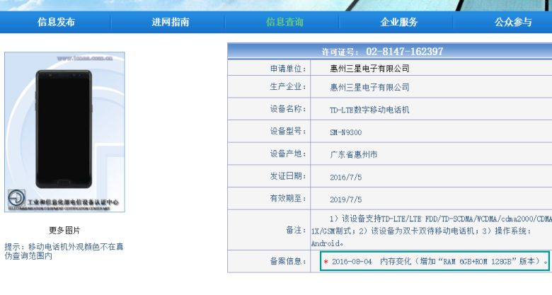 Y es que, desde China (para variar), se ha filtrado información de un teléfono de Samsung con el código SM-N9300 que tiene todos las especificaciones del Galaxy Note 7, pero que incluiría 6 GB de RAM y 128 GB de almacenamiento.