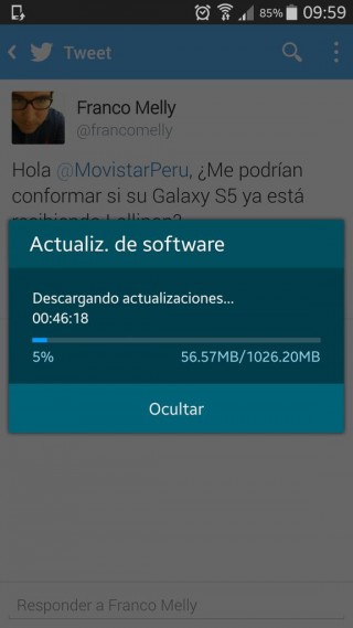 Pero bien, no más hígado, al menos para los dueños de Galaxy S5 de Movistar y Claro, ya que ambas compañías telefónicas ya estarían liberando vía OTA el update correspondiente a Android 5.0.
