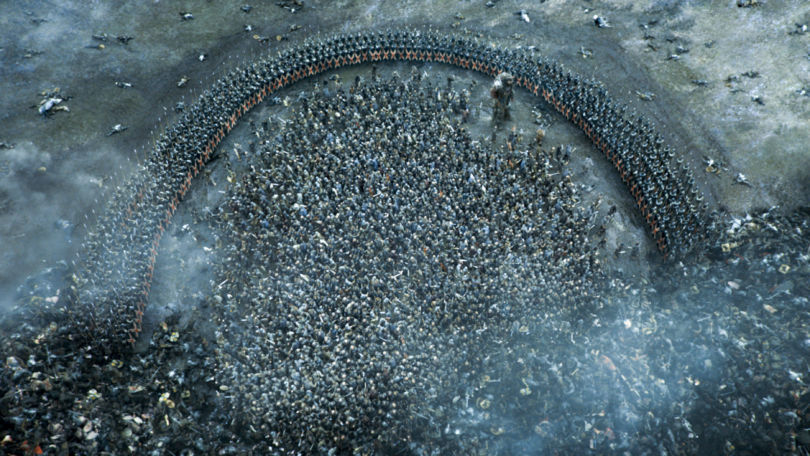 Para dicha secuencia se necesitaron nada menos 600 miembros en el equipo técnico que trabajaron durante 25 días con 500 especialistas y extras, y con 80 caballos. Sin duda el trabajo de efectos visuales de la compañía australiana Iloura en una secuencia de este calibre ha sido sencillamente impresionante, pero no hay que quitar ni un ápice de mérito al equipo de especialistas que son los que realmente les dan vida a estas escenas y con una dificultad añadida, el rodar junto con un grupo tan numeroso de animales.