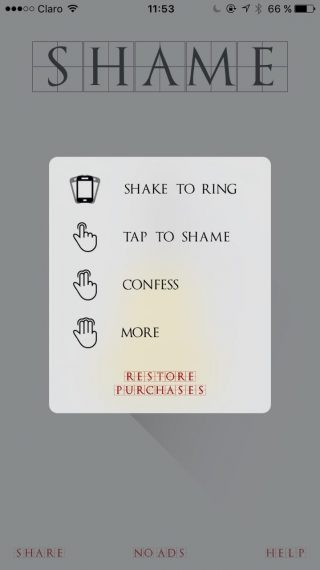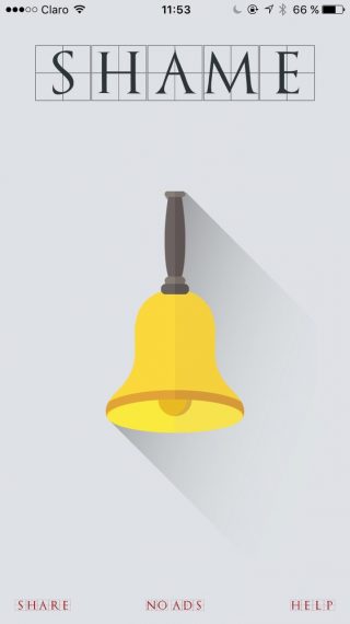Shame Bell solo está disponible para App Store de forma gratuita, aunque si pagas $0,99 puedes quitarle los anuncios que aparecen aleatoriamente en la pantalla.