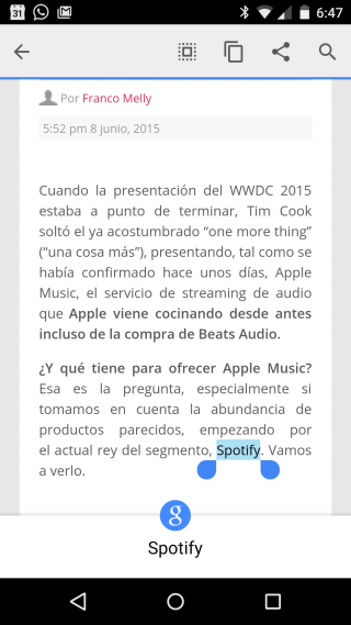 Además, con esta nueva actualización, la funcionalidad de búsqueda al seleccionar una palabra (como hasta hace unos días) se ha agregado a otras aplicaciones, como Gmail o Evernote, que antes no tenían.