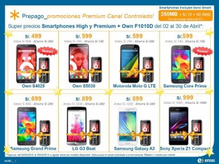 Tenemos una lista bastante larga de equipos, todos en prepago y acompañados de un Own F1010D (terminal básico) de regalo, así que aquí te dejaremos solo los que creemos son los más interesantes: