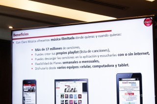 “Claro Música es el servicio ideal para todas aquellas personas que utilizan sus dispositivos móviles para escuchar música o que incluso lo hacen desde sus computadoras, ya que a través de esta tienda en línea tendrán la posibilidad de acceder a un universo de más de 17 millones de canciones para escucharlas donde quieran, cuando quieran y las veces que quieran”, señaló Vanessa Solís, Gerente de Servicios de Valor Agregado de Claro.