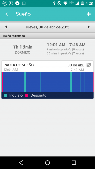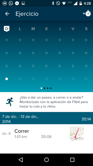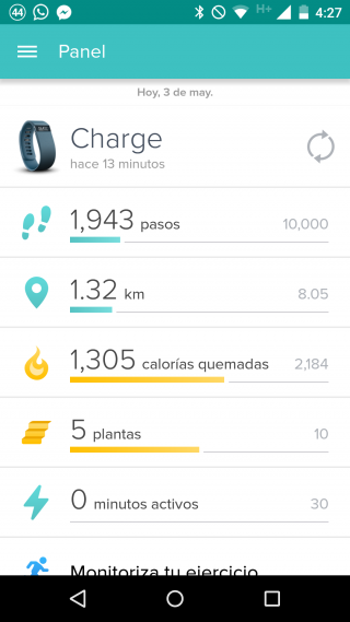 Ahora, hablando del móvil, a pesar de no ser necesario que esté sincronizado el 100% del tiempo para monitorizar tu actividad física, es desde aquí donde las cosas se ponen más interesantes gracias a la aplicación de Fitbit.