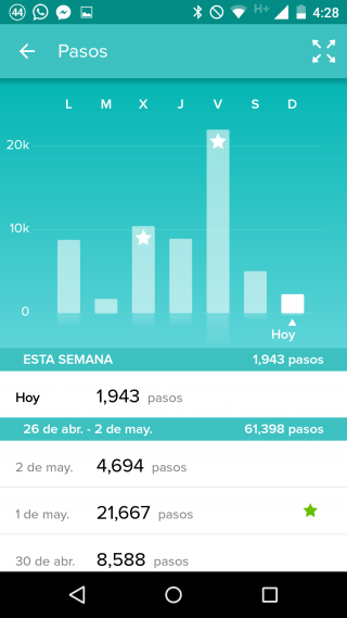Esta aplicación, disponible tanto para Android, iOS como para Windows Phone, te mostrará ya no solo los datos del día, sino que a través de ella podremos ver un histórico de nuestra actividad, así como seguir un régimen alimenticio, lo cual va a necesitar que le pongas algo de voluntad al asunto.